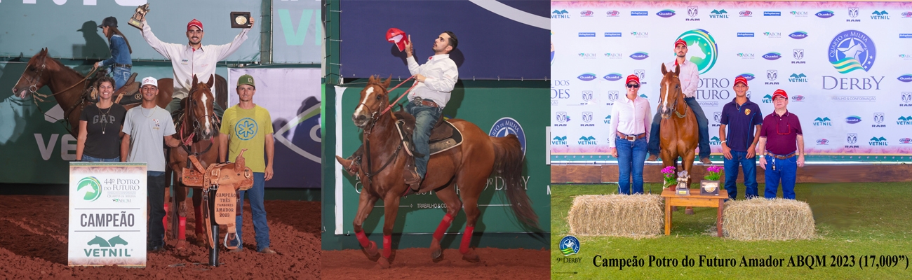Homenagem ao meu neto pela brilhante performance no Potro do Futuro ABQM Amador 2024 vencendo a categoria com a potra Chanel Red, com o tempo de 17.009”, título mais importante da sua carreira. Além disso, já tinha conquistado o Potro do Futuro Jovem em 2015, 2017 e 2018, vencendo com as nossas éguas Bila Red, Rainbow Dash Red e Miss Baby Red, da nossa criação. Parabéns ao nosso campeão Thiago Freitas. Parabéns ao nosso treinador Gabriel Pavon que preparou com excelência os nossos animais, e a todos que nos ajudaram nessas conquistas! Assista aos vídeos das quatro conquistas!!!